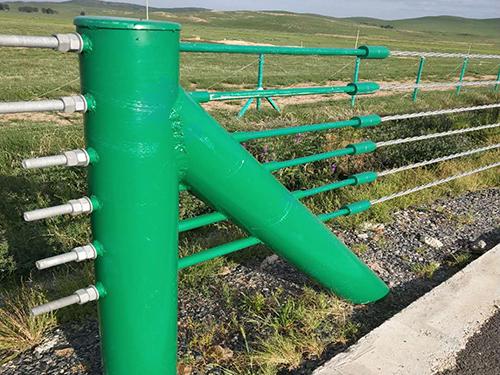 端部立柱是纜索護欄的主要配件,每段中應(yīng)用兩支,它的作用就是用來拉緊中間鋼絲繩不會過松。